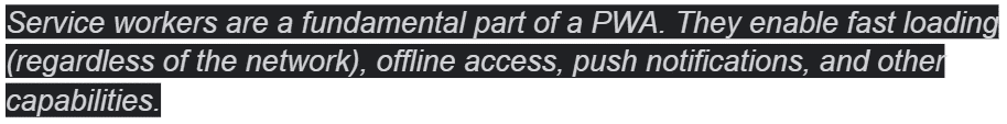 Put simply, PWAs are just web applications that are “transformed” into something more via service workers, web manifests and a series of best practices.