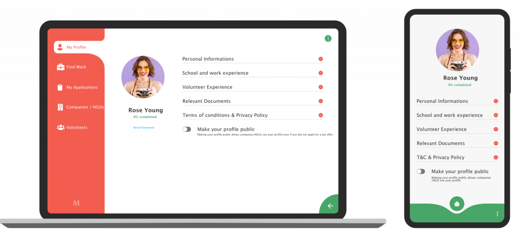 The goal of this B2B2C software solution was to create an interactive experience between enthusiastic volunteers that want to find their next challenge and companies that encourage volunteering work.