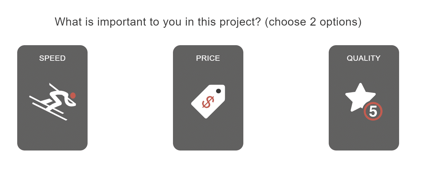 Just for the sake of it, if it does one thing, that is to slightly push you to think twice in matters of priorities. What do we mean by that? Well, once you decide that speed and budget are the most important aspects for you, keep in mind that the end quality of the product might be affected. Or if you decide from the get-go that quality and budget are most important, the speed of the delivery might be affected.