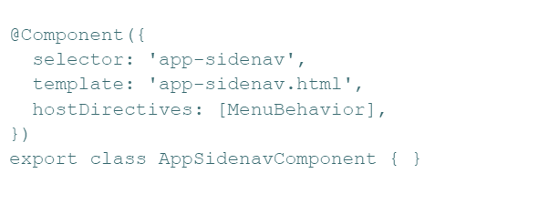 In the mentioned example, we practically bestow our Sidenav with a MenuBehaviour. This is a powerful feature as it allows for the creation of specific behaviors that can be replicated between components (think of it in terms of multiple inheritance).