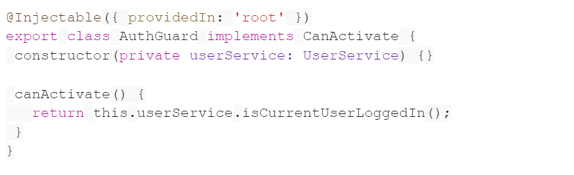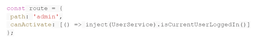 Now, you can simply invoice a method directly in the CanActivate clause, by simply injecting the service into the routing module and using it on the spot. Pretty neat!