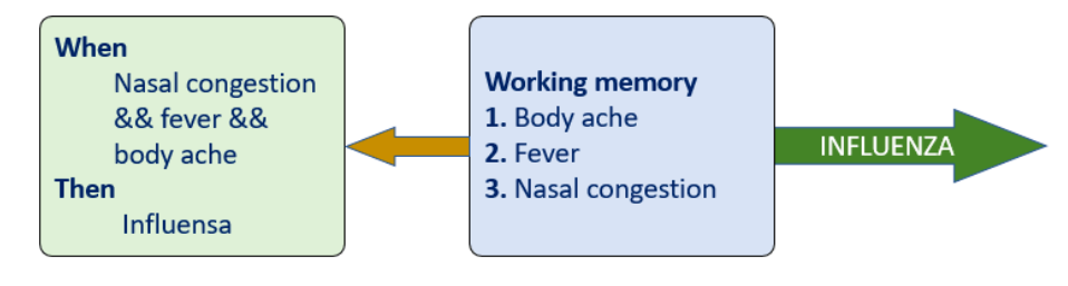 Let’s consider a scenario of the medical diagnosis system. If the patient’s symptoms are put as facts into working memory, then it is easy to diagnose him with an ailment.